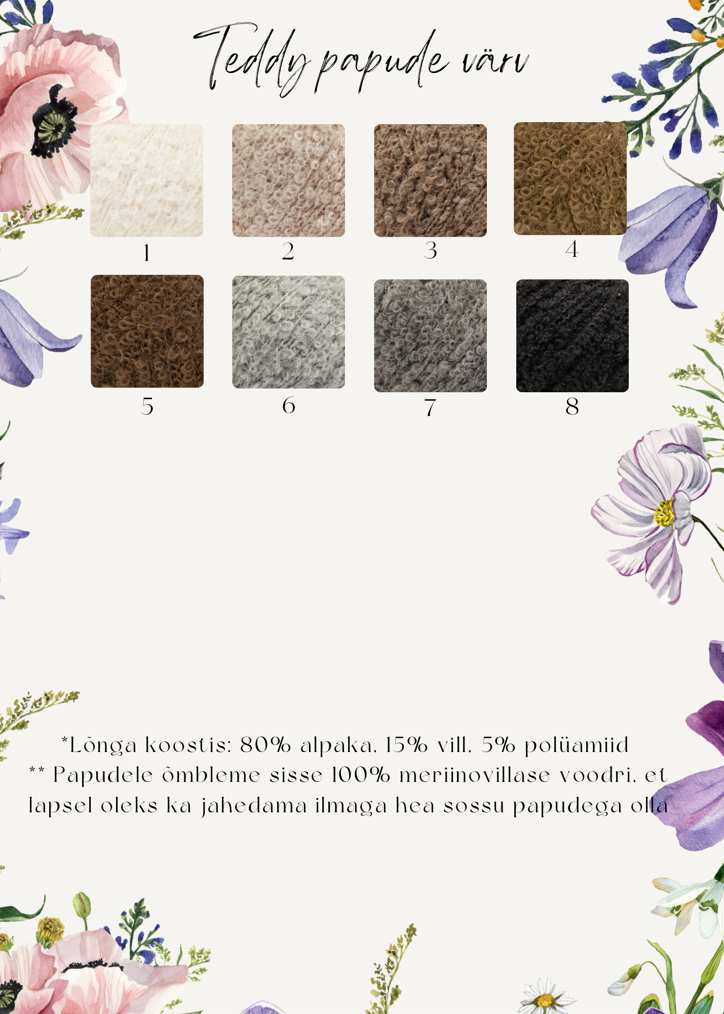 Need pehmed ja hubased Teddy papud on ideaalne lisand Sinu pisikese garderoobi, pakkudes soojust ja mugavust ka jahedamal talvepäeval. Disainitud ja käsitööna kootud Eestis!