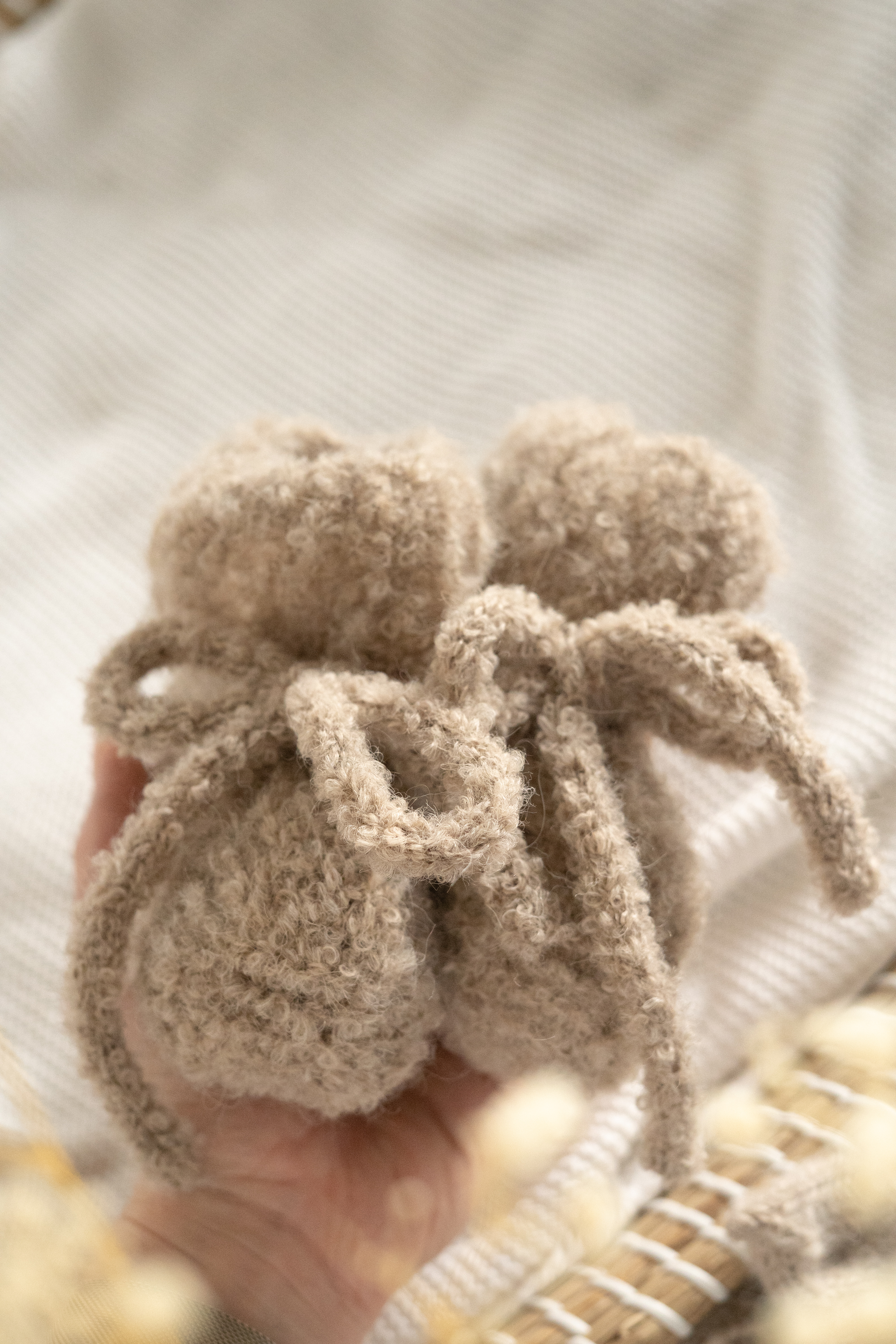 Need beebipapud on ideaalne kingitus vastsündinule või suuremale lapsele külmemateks talveilmadeks. Tänu meriinovillasele voodrile saab papusid kanda ka kerge miinuskraadiga. Iga paar on valmistatud suure armastuse ja hoolega, pakkudes pisikesele maksimaalset mugavust. Kuna papud koon spetsiaalselt tellimuse peale, siis arvesta palun 2-3 nädalase valmistamisajaga.