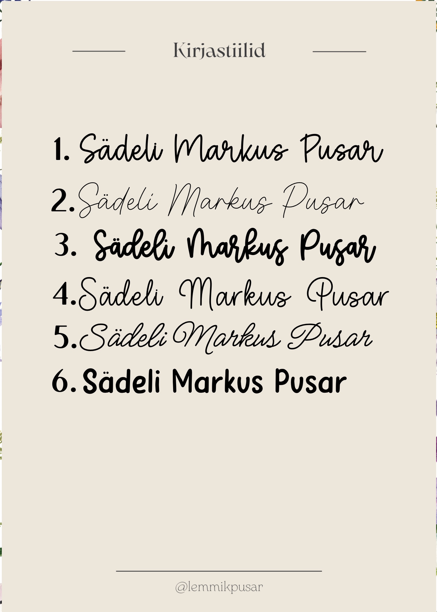 Kui soovid näha just oma lapse nimega kirjastiile, anna sellest märku „muu oluline“ lahtris ja saadame valikud pärast tellimuse esitamist.