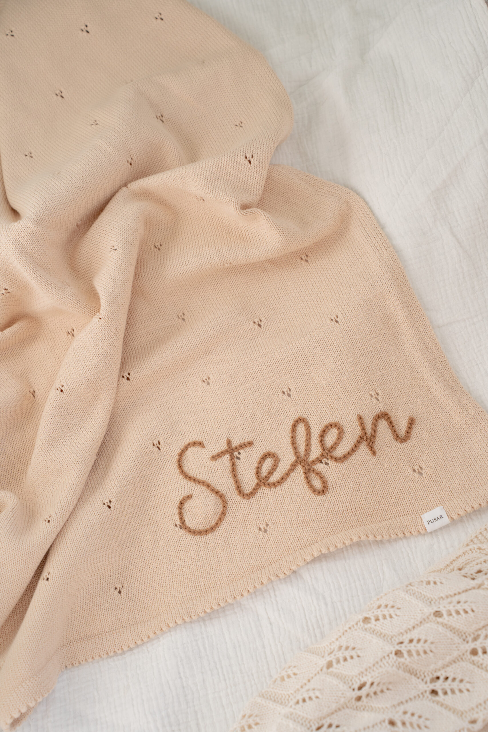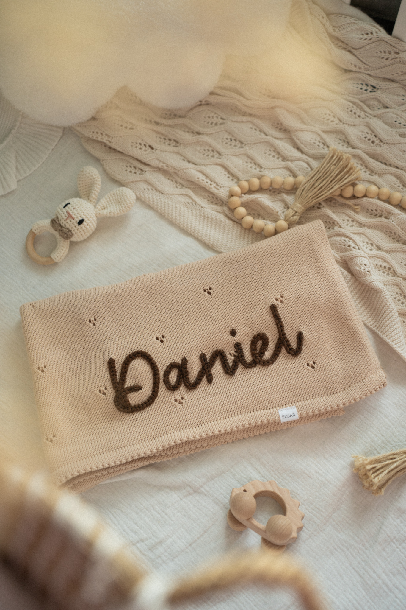 Pusari nimeline puuvillane beebitekk on loodud väikestele, kes vajavad soojust, turvatunnet ja pehmust igas päevas. See on tekk, mille alla on hea pugeda uneajaks, millel mängida või mida kaasa võtta vankrisse ja reisile. Käsitsi tikitud nimi muudab iga teki isiklikuks ja kordumatuks – mälestusese, mis leiab aastaid kasutust.