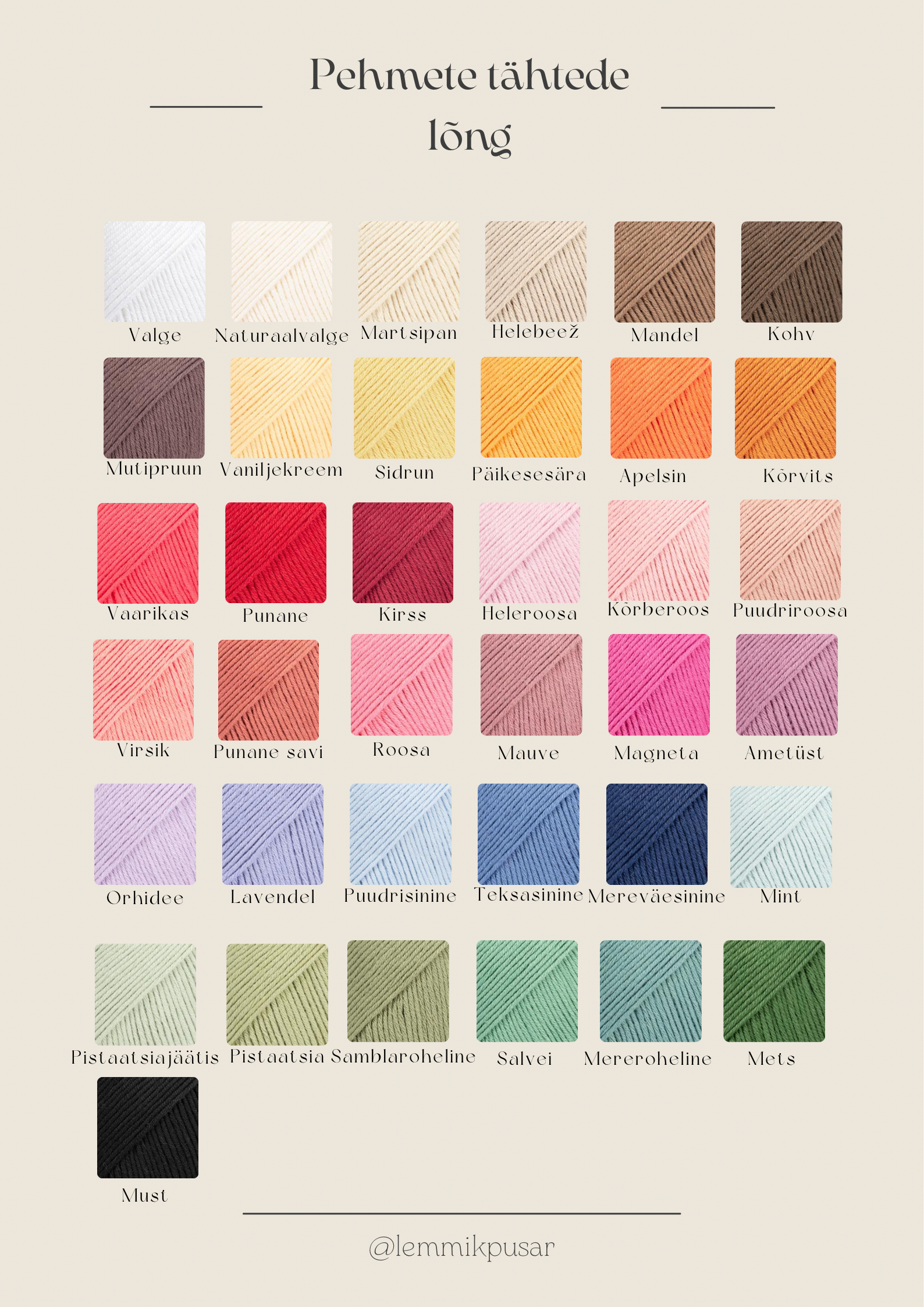 Valikus on peenike ja keskmise paksusega lõng. Peenikese lõngaga jääb tulemus armsalt tagasihoidlik ja detailne. Keskmise paksusega lõnga puhul on tulemus silmapaistvam ning armsalt “chunky”.
